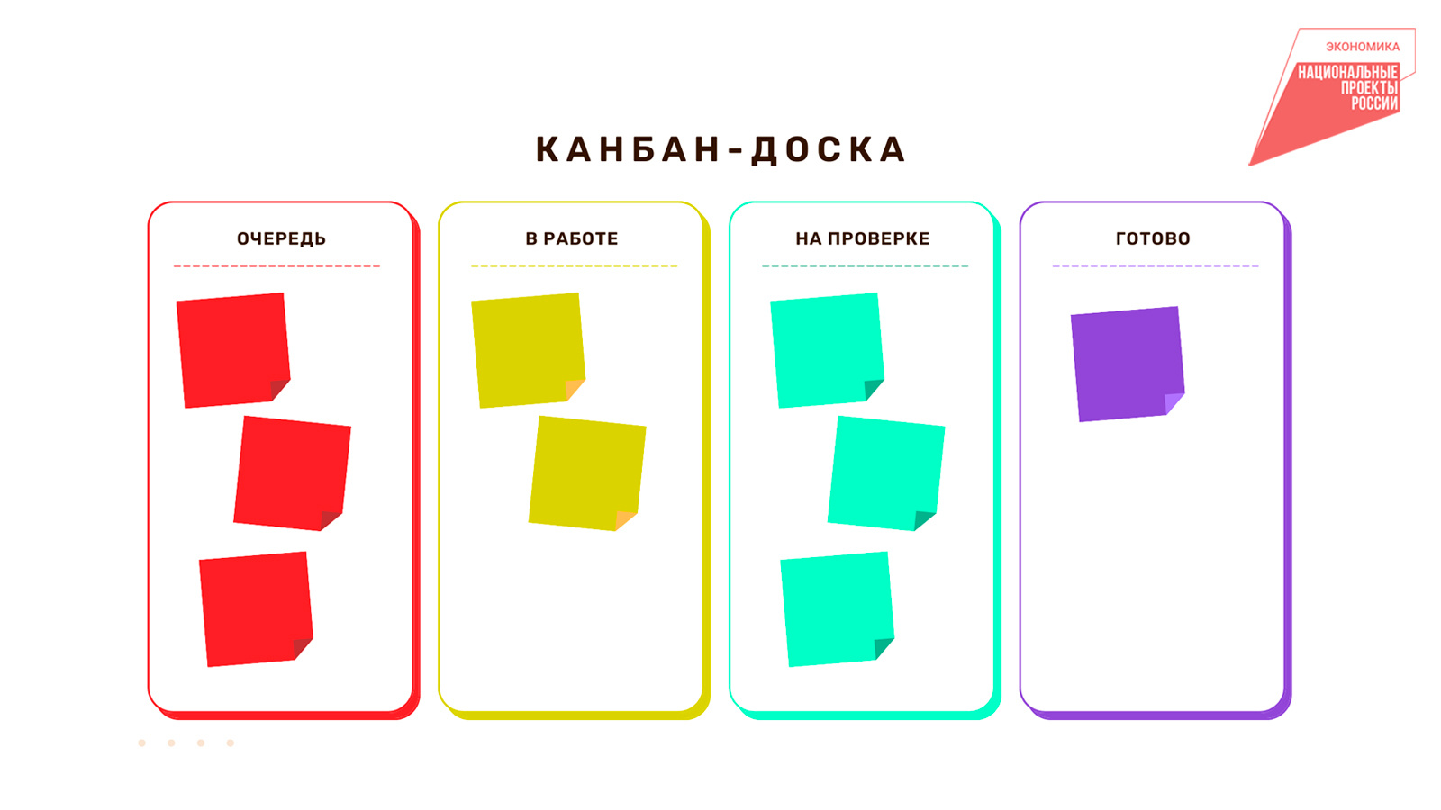 3. Распишите задачи на стикерах (или карточках) и разместите их в соответствующих столбцах-стадиях.